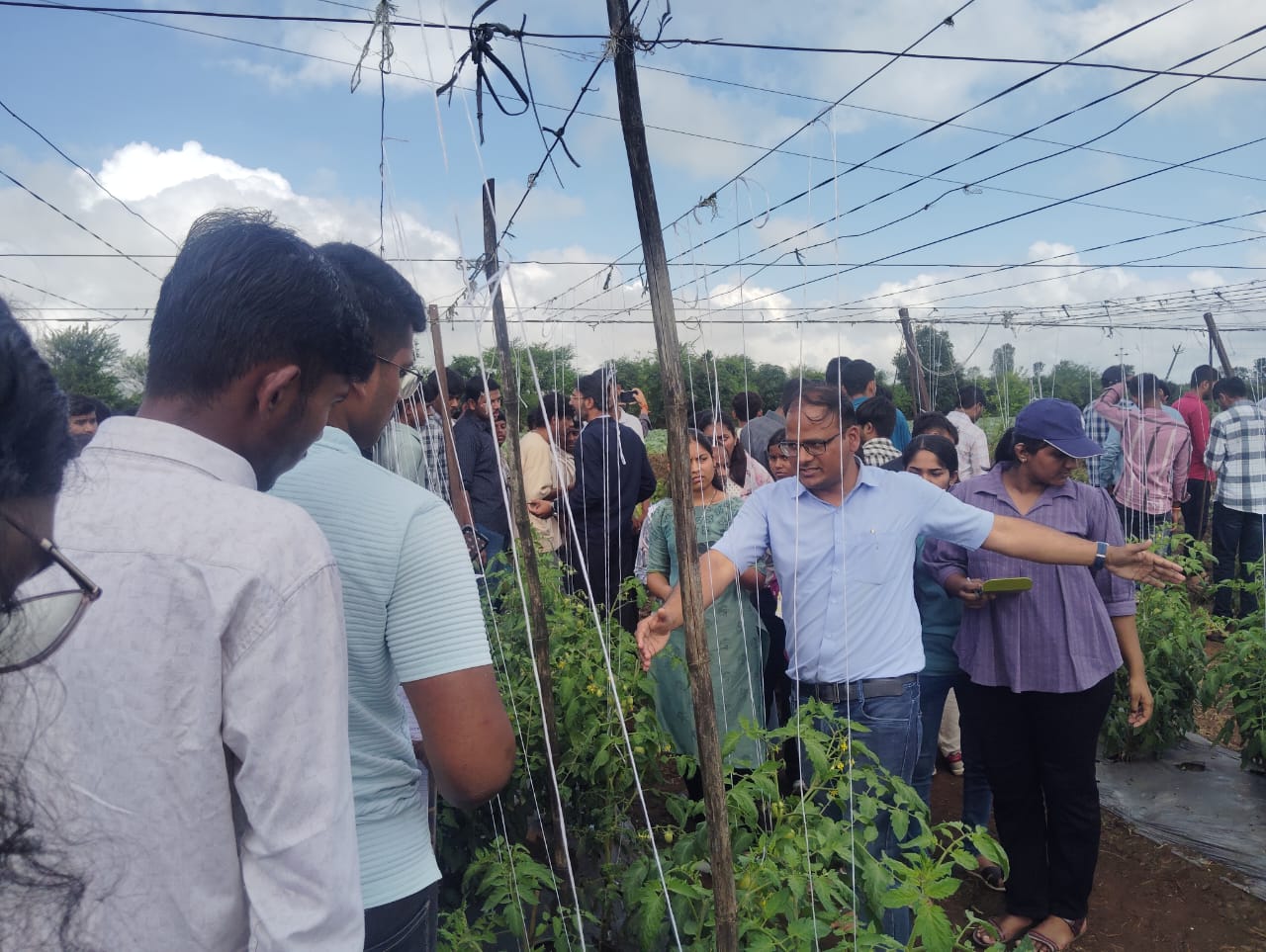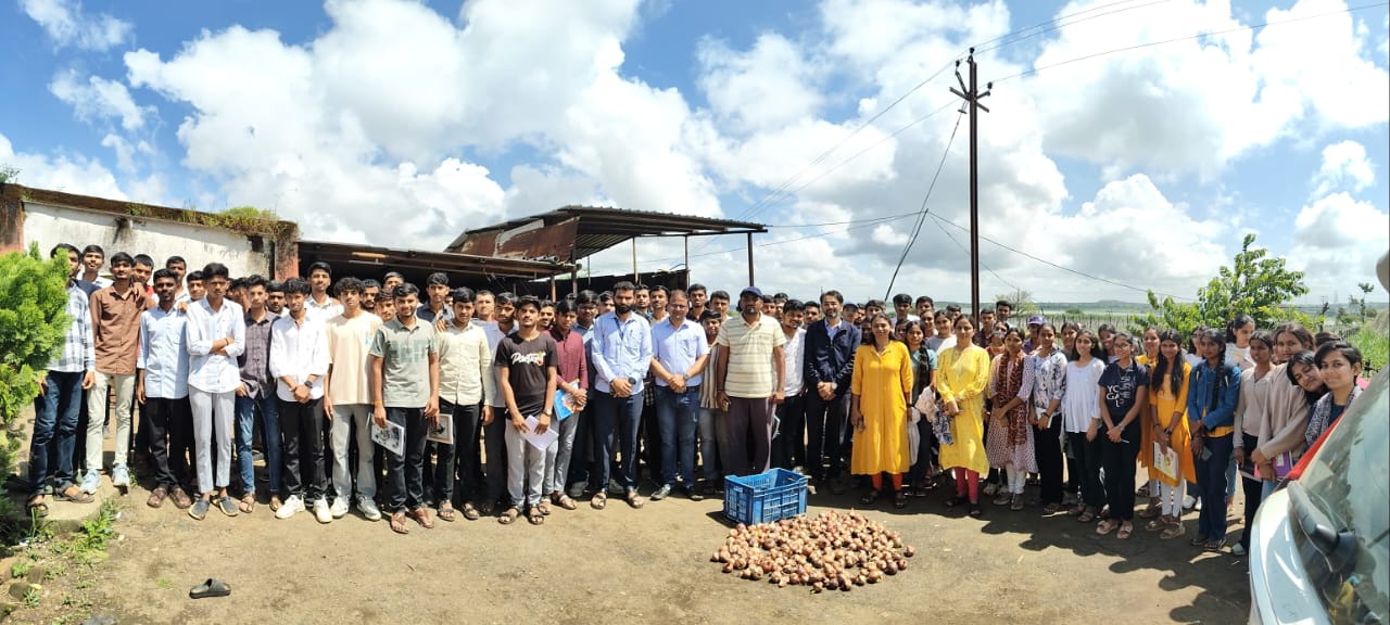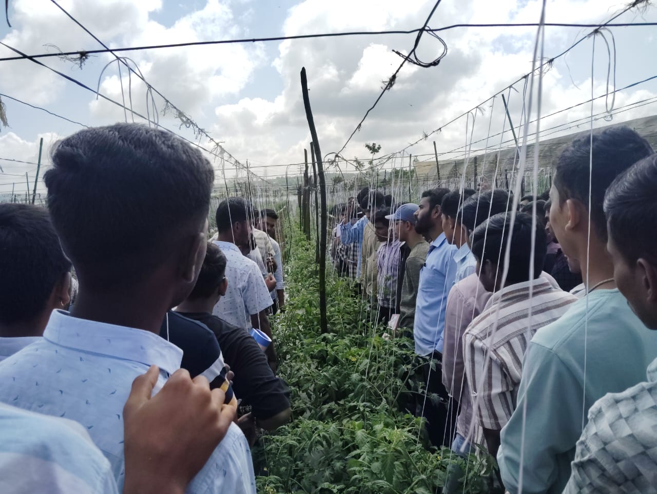 मराठा विद्याप्रसारक समाजाचे कर्मयोगी दुलाजी सीताराम पाटील कृषी महाविद्यालय, चाचडगाव, नाशिक येथील प्रा. योगेश भगुरे व प्रा. डॉ. कुणाल सुर्यवंशी, प्रा. कविता पानसरे, प्रा. श्वेता सातपुते, प्रयोगशाळा सहाय्यक भरत मोरे यांनी दिनांक 25/9/2025 रोजी उमराळे व आजूबाजूच्या परिसरात शिवार फेरी केली. शिवार फेरी करीत असताना श्री. निलेश केदार यांच्या प्रक्षेत्रावर भेट दिली. श्री. निलेश केदार हे उमराळे गावातील प्रगतीशील शेतकरी असून त्यांच्या शेतात उत्तम प्रतीचे विविध भाजीपाला पिके असून त्यांनी या पिकाविषयी सर्व माहिती सांगितली व उपस्थित प्राध्यापकांनी शेतकऱ्यांना विविध विषय म्हणजेच जमिनीचे आरोग्य, किड व्यवस्थापन, रोग व्यवस्थापन, पाण्याचे नियोजन, खतांचे नियोजन व विक्री व्यवस्था या बाबत चर्चा करून मार्गदर्शन केले. त्यांच्या शेतात सध्या टोमॅटो, फुलकोबी, कोबी, शिमला मिरची, भुईमूग, झेंडू इ पिके आहेत.
