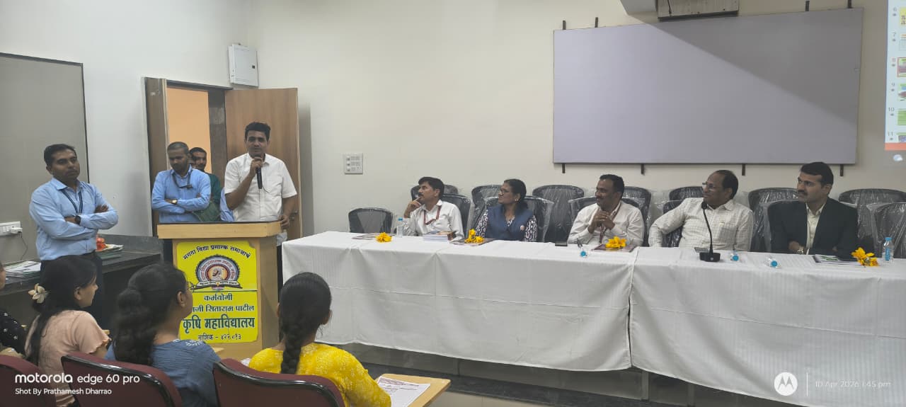 महाविद्यालयातील प्रशस्त  अशा सेमिनार हॉल मध्ये  विद्यार्थ्यांना संबोधित करताना कृषि महाविद्यालयाचे प्राचार्य डॉ बापूसाहेब भाकरे यांनी   विध्यार्थ्यांना या  महाविद्यालयातून शिक्षण घेऊन विविध क्षेत्रात कार्यरत  यशस्वी  विद्यार्थ्यांची प्रेरणादायी माहिती  आणि  वर्तमानात आणि  भविष्यातील कृषि क्षेत्राचे महत्व विशद केले. तसेच प्रा. डॉ विशाल गमे यांनी कृषि महाविद्यालयात प्रवेशासाठी लागणाऱ्या निकष आणि पात्रतांची सविस्तर माहिती विध्यार्थ्यांना दिली. याप्रसंगी आवर्जून विद्यार्थ्यांना कृषी क्षेत्रातील उपलब्ध करियर संधीचे मार्गदर्शन  करण्यासाठी कृषिभूषण श्री भूषण निकम यांचे माहितीपूर्ण सत्र ठेवण्यात आले होते. कृषी महाविद्यालयची अभ्यास भेट सर्व विध्यार्थ्यानी आणि प्राध्यापकांनी अत्यंत माहितीपूर्ण  आणि  प्रेरणादायी झाल्याचे संगितले.या प्रसंगी बोलताना  के टी एच एम   महाविद्यालयाचे प्राध्यापक रेडगावकर सर यांनी हे कृषि  महाविद्यालय निसर्गरम्य वातावरणात आणि सर्व सोयींनी सुस्सज असून उत्तम प्राविण्यपुर्ण  प्राध्यापकांद्वारे  परिपूर्ण असल्याचे नमूद केले. तसेच सदर अभ्यास भेट आयोजनाबद्दल प्राचार्यांचे आभार व्यक्त केले.  भेटीचे यशस्वीतेसाठी   मराठा विद्या प्रसारक समाजचे शिक्षणाधिकारी डॉ अजित मोरे आणि प्राचार्य डॉ बापूसाहेब भाकरे यांनी मार्गदर्शन केले. महाविद्यालयाचे प्रा. पंकजसिंह चौहाण यांनी संपूर्ण अभ्यास भेटीचे आयोजनात समन्वयकाची भूमिका पार पाडली . कार्यक्रमाचे प्रास्तविक आणि आभार प्रदर्शन यांनी प्रा. डॉ. सुधीर शिंदे यानी केले.