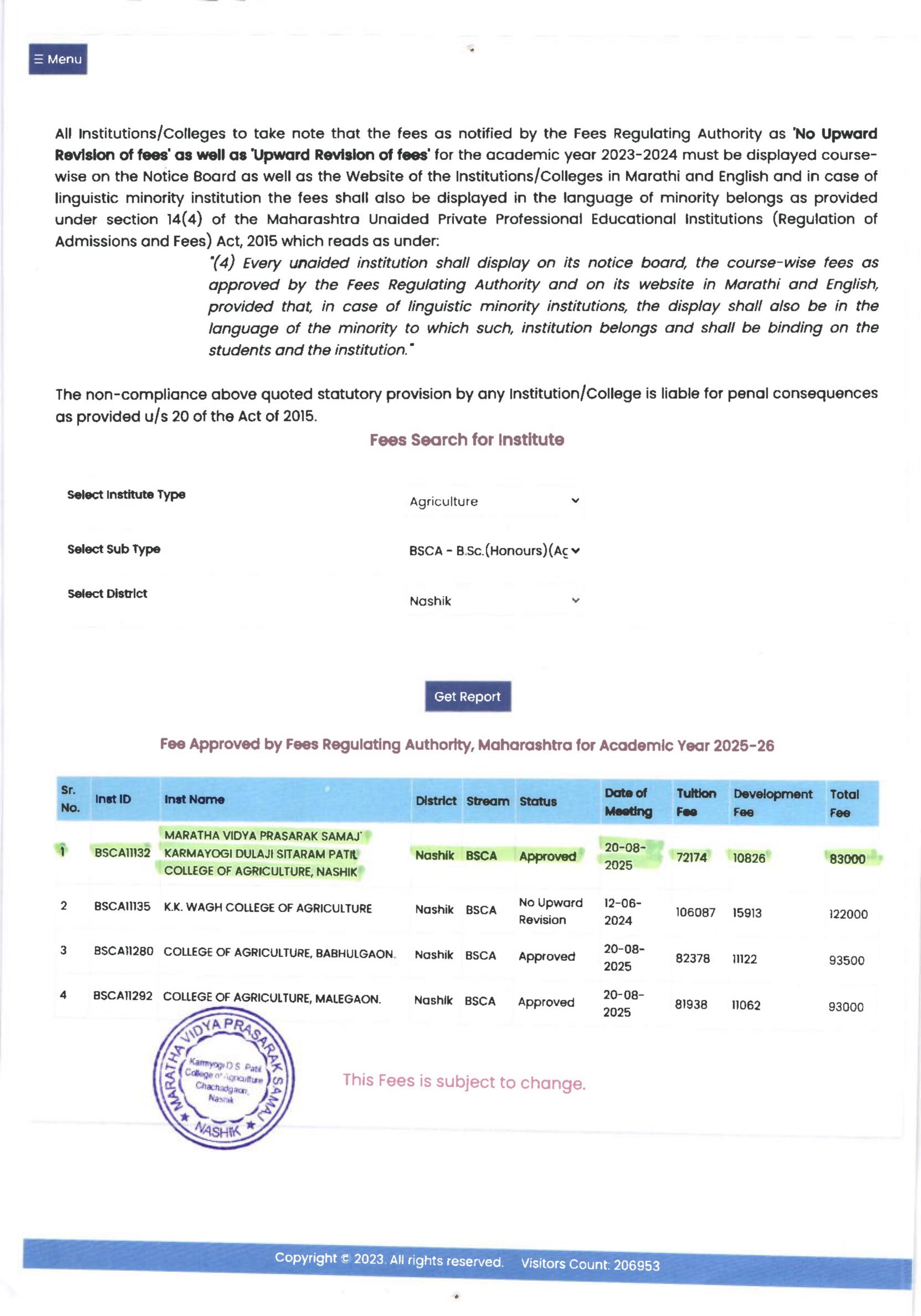 Maratha Vidya Prasark Samaj's Karmayogi Dulaji Sitaram Patil College of AgricultureA/P - Chachadgaon (Nashik - Peth Highway), Tal - Dindori, Nashik-422203 ( Affiliated to Mahatma Phule Agriculture University, Rahuri ) |